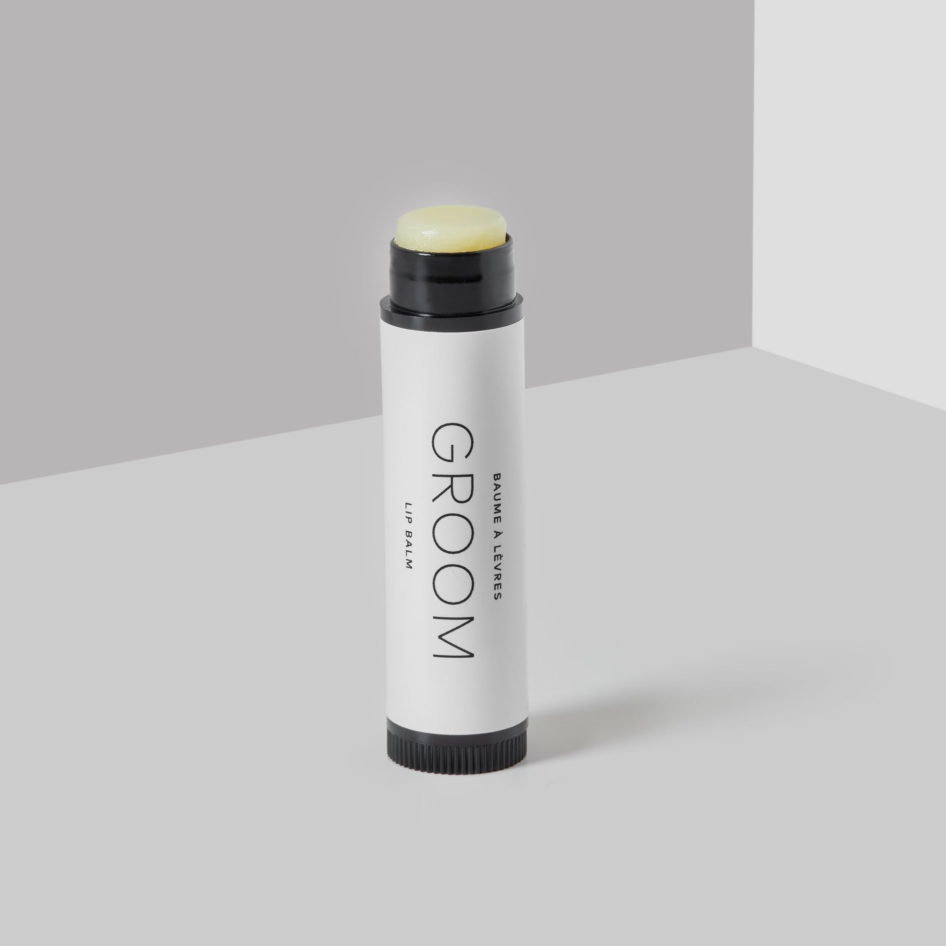 Le baume à lèvres Groom protège du soleil et du vent tout en offrant un fini mat. Sa formulation est prévue pour une application régulière dans un tube à molette composé à 35 % de plastique recyclé postconsommation.