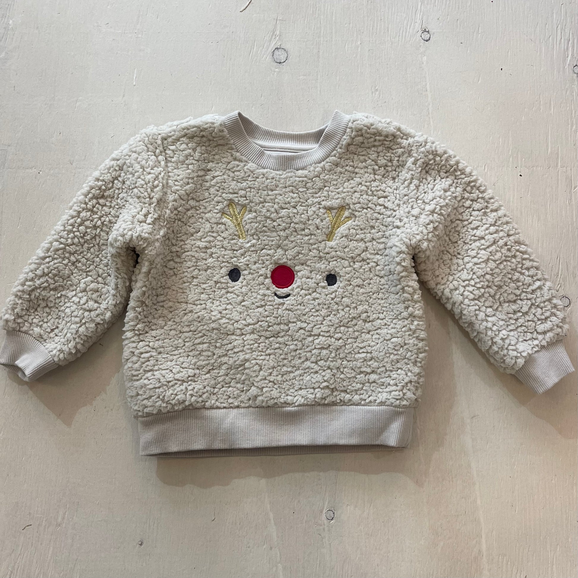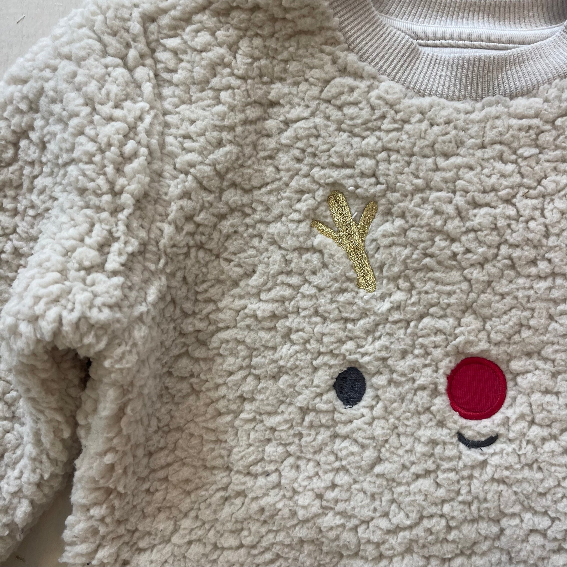 - Couleur : Écru avec visage de renne brodé