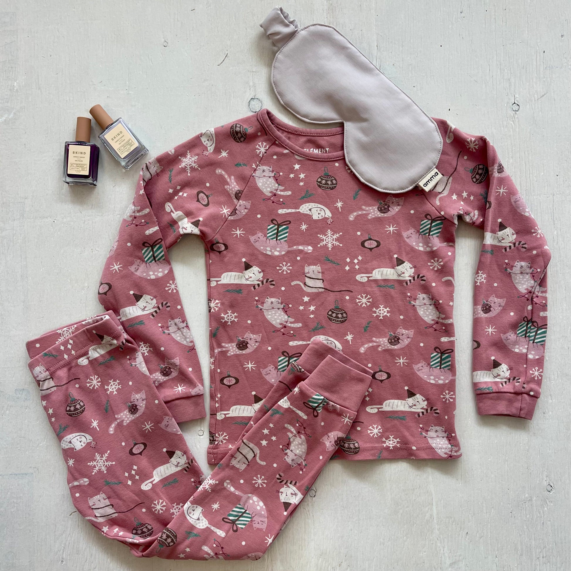 - Couleur : Rose avec motifs de chats de Noël
