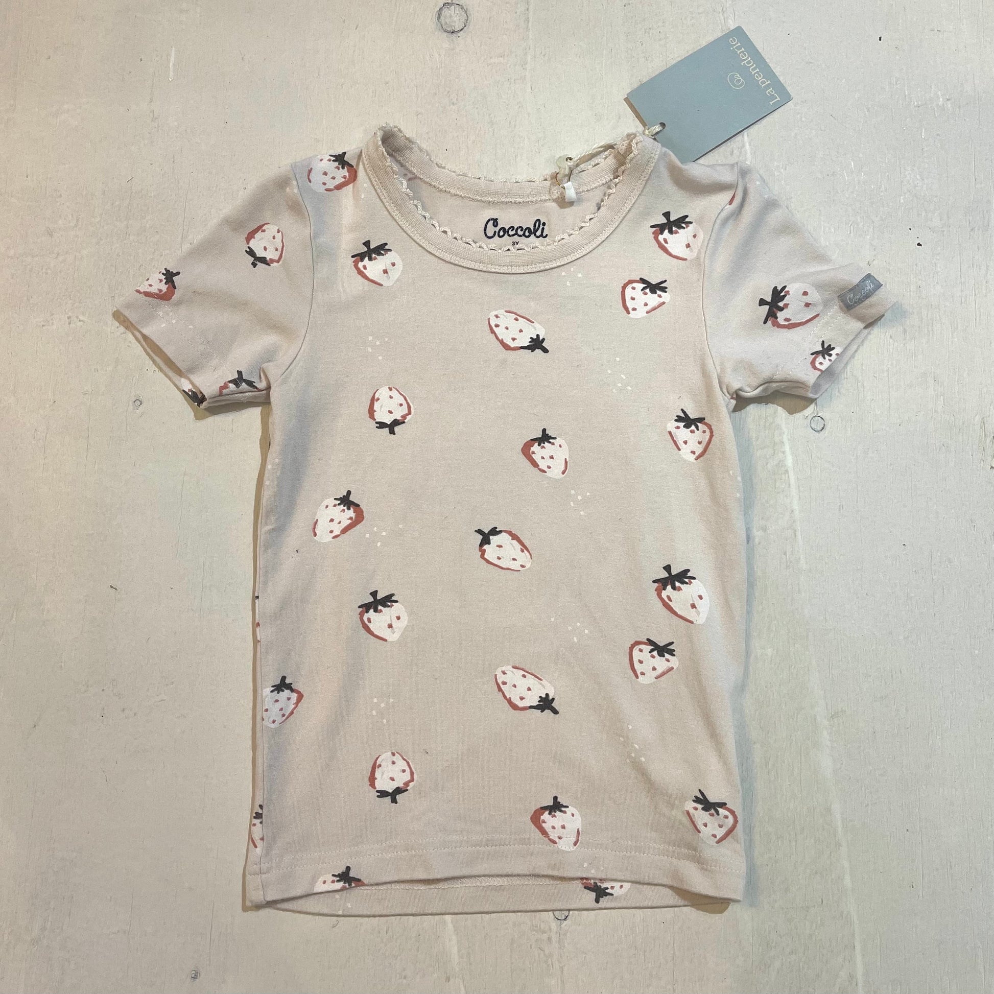 - Couleur : Rose pâle avec motifs de fraises