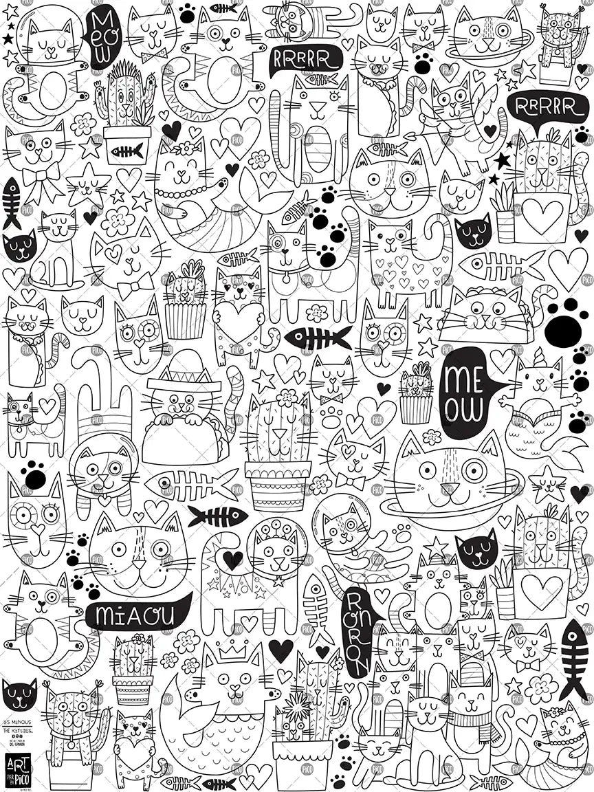 C'est l'heure d'exprimer votre amour pour les félins tout en coloriant! En famille ou entre amis, on cherche notre chat taquin préféré! Ce coloriage géant permet de colorier en famille ou entre amis sous le thème des chats. Une belle activité pour les fêtes d'amis ou les jours de pluie!