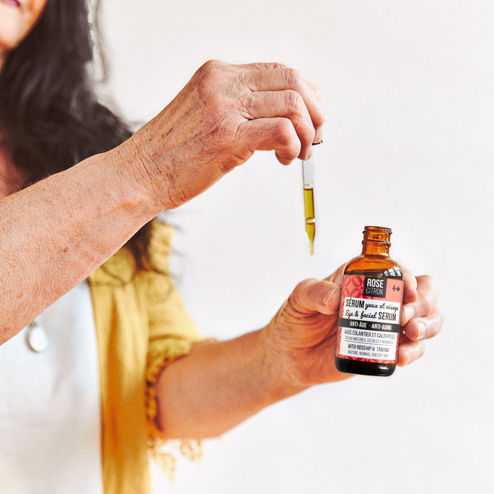 - Sérum contour des yeux et visage anti-âge, par Rose Citron