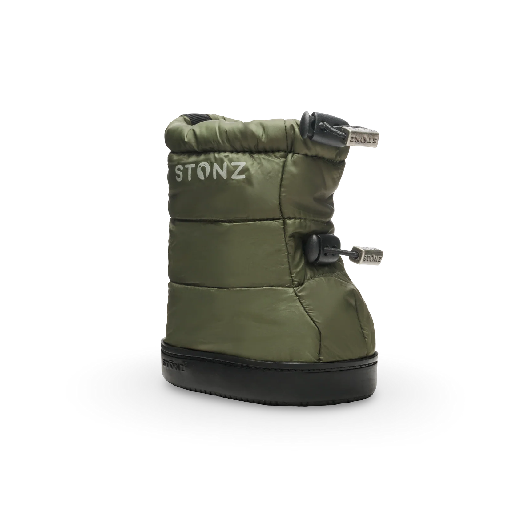 Les chaussons Puffer Bootie Baby de Stonz sont conçus pour garder les petits pieds au chaud et en sécurité. Légers et isolés avec du 3M™ Thinsulate™ 150G et résistants au froid jusqu'à -20ºC (-4ºF), ils offrent une chaleur exceptionnelle sans être encombrants. La tige en nylon hydrofuge repousse l'humidité, tandis que la doublure en polaire douce garde les pieds au sec et à l'aise. Dotés de deux cordons élastiques à la cheville et sur le dessus, ces chaussons sont conçus pour rester bien en place lorsqu'ils sont portés par dessus des chaussettes ou des chaussures. La semelle souple et antidérapante en PU offre une bonne stabilité pour les premiers pas ou les promenades en poussette. Parfaites pour les sorties rapides ou pour être portés toute la journée, ces chaussons bouffants permettent de sortir rapidement et sans stress.