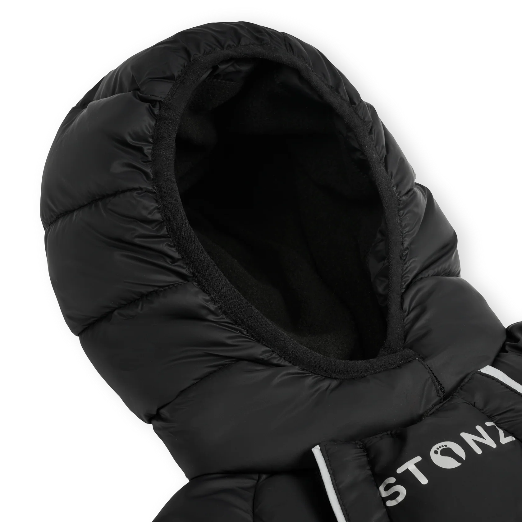 La combinaison de neige 2-en-1 Stonz est conçue pour la chaleur, la polyvalence et la protection par temps froid. Sa coupe décontractée permet de la superposer facilement, tandis que la fermeture à glissière au niveau des jambes permet de la transformer en quelques secondes d'une combinaison de neige en cocon d'hiver. Le tissu extérieur enduit de PU est coupe-vent et résistant à l'eau (1500 mm), protégeant de la neige et des vents froids. L'isolation en polyester à haut pouvoir gonflant garde les petits au chaud, et la doublure en polaire douce les rend encore plus douillets. Une capuche isolée attachée avec un bord élastique assure un ajustement sûr qui garde la chaleur à l'intérieur, tandis que les manches raglan offrent une plus grande amplitude de mouvement pour les mouvements actifs. Des détails bien pensés comme les fermetures à glissière avant bidirectionnelles YKK™ pour faciliter l'habillage, les étriers réglables pour maintenir les jambes en place et les passepoils réfléchissants pour la visibilité font de cette combinaison un must pour les sorties hivernales, les promenades en poussette et les aventures en plein air.