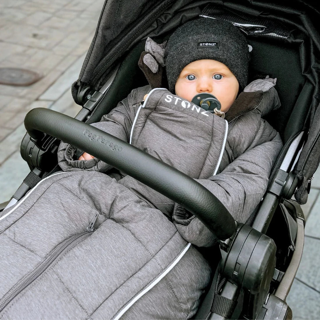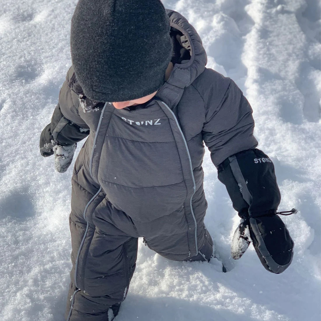 La combinaison de neige 2-en-1 Stonz est conçue pour la chaleur, la polyvalence et la protection par temps froid. Sa coupe décontractée permet de la superposer facilement, tandis que la fermeture à glissière au niveau des jambes permet de la transformer en quelques secondes d'une combinaison de neige en cocon d'hiver. Le tissu extérieur enduit de PU est coupe-vent et résistant à l'eau (1500 mm), protégeant de la neige et des vents froids. L'isolation en polyester à haut pouvoir gonflant garde les petits au chaud, et la doublure en polaire douce les rend encore plus douillets. Une capuche isolée attachée avec un bord élastique assure un ajustement sûr qui garde la chaleur à l'intérieur, tandis que les manches raglan offrent une plus grande amplitude de mouvement pour les mouvements actifs. Des détails bien pensés comme les fermetures à glissière avant bidirectionnelles YKK™ pour faciliter l'habillage, les étriers réglables pour maintenir les jambes en place et les passepoils réfléchissants pour la visibilité font de cette combinaison un must pour les sorties hivernales, les promenades en poussette et les aventures en plein air.